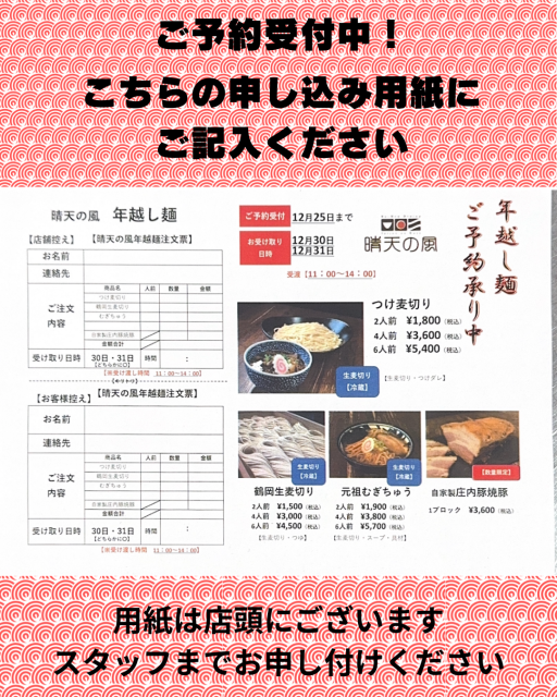 🎍年越し麺 ご予約受付中!🎍